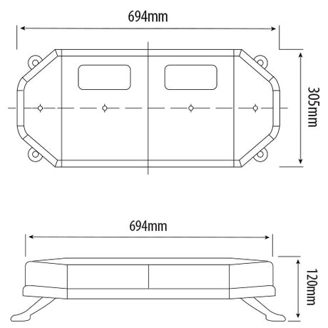 156 Series Smoked LED Lightbar 600mm – R65 Approved Amber Warning Light with Bolt Mount 9–30V
